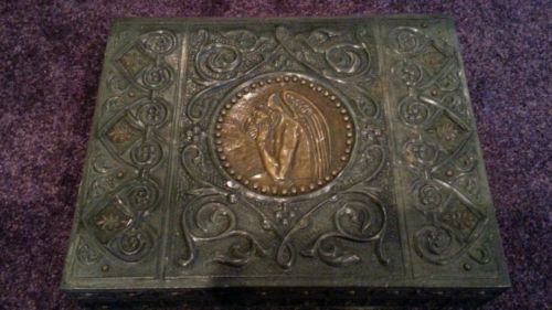 Vintage Embossed Design Tin & Wood Cigar Jewelry Box rare.