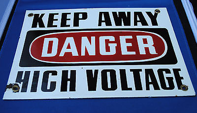 Vintage Enamel on Steel Danger High Voltage Sign USA 7" X 10" ENAMEL 2 SIDES