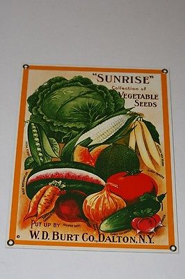 Title (ebay affiliate link): SUNRISE VEGETABLE SEEDS - Ande Rooney Porcelain Enameled Advertising Signs Grow