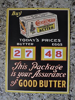 Country Maid Butter Advertising Sign with moveable butter & eggs price numbers