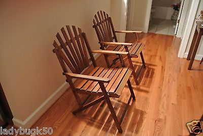 Pair Antique 1930's Wooden Oak Folding Chairs VG Sturdy Sun Room, Deck, Anywhere