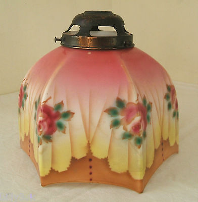 Vintage / Antique Genuine Art Deco & Floral Painted Milk Glass Light/ Lamp Shade