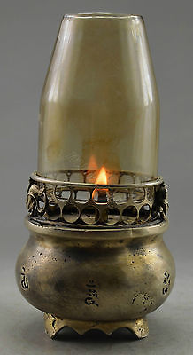 Collectible Decorated Old Handwork Tibet Silver Carved Lizard Oil Lamp