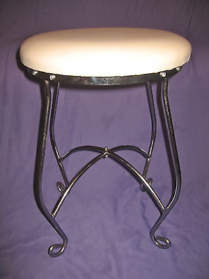 VTG Mid Century Retro Vanity Chair Stool Upholstered Chrome Metal Scrolled Feet