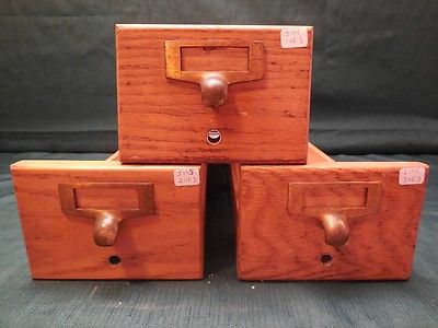 Title (ebay affiliate link): Lot of 3 Library Card Catalog Drawers, Solid Wood Dovetailed, Antique Bureau