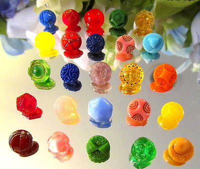 25 COLORFUL DIMINUTIVE GLASS BUTTONS GOOD FOR DOLL CLOTHES A42