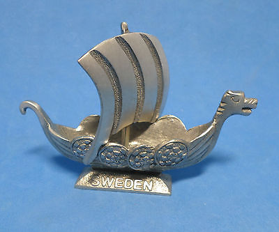 VINTAGE MINIATURE SWEDISH VIKING LONG SHIP PEWTER,TINN METAL FIGURINE,MODEL