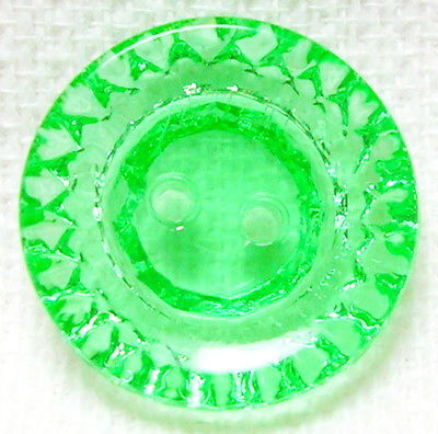 BEAUTIFUL 1930'S SPRING GREEN DEPRESSION GLASS BUTTON w/DIAMOND PATTERN BACK