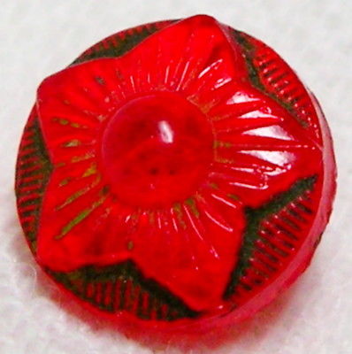 WONDERFUL 1930'S RUBY RED DEPRESSION PATTERN GLASS BUTTON w/STAR