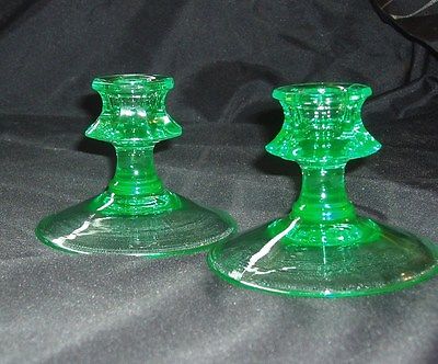 Title (ebay affiliate link): Vintage Green Depression Glass Candel Stick Holders
