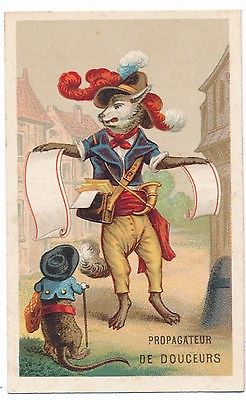 Very Rare victorian trade card 1890 's anthropomorphic card Fox and rat