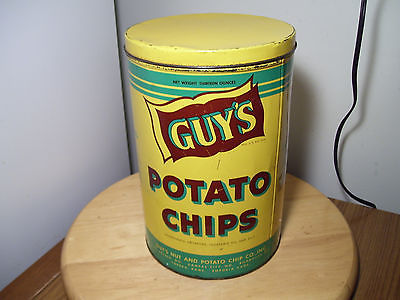 VINTAGE GUY'S POTATO CHIPS COLLECTORS TIN CAN 7 1/2 "w x 11 1/2"h 13 oz size