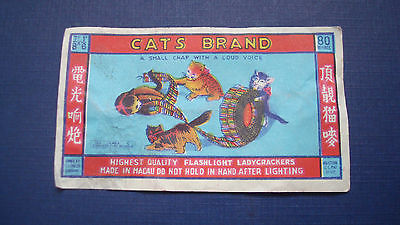 VINTAGE CAT'S BRAND PAPER LABEL FIRECRACKER LABEL.