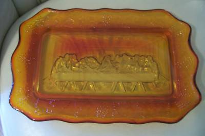 DEPRESSION GLASS AMBERINA BLENKO LAST SUPPER PLATTER