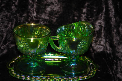 Title (ebay affiliate link): Indiana Green Carnival Glass Green Cream, Sugar & Tray