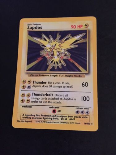 Title (ebay affiliate link): Pokemon card-Zapdos - 16/102 - Holo Base Set-Slight Played or Better Condition