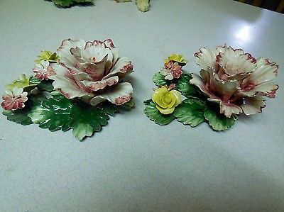 Title (ebay affiliate link): Capodimonte Rose Candle Holders - Crown w/'N' on Base - Vintage