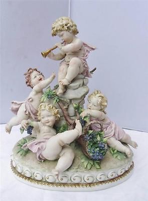 V RARE CAPODIMONTE GIUSEPPE CAPPE FIGURE GROUP OF FOUR CHERUBS / CHILDREN