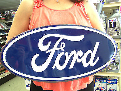 Large FORD Blue Oval Vintage Look 3D Sign Bullitt Steve Mustang Boss Mach One PU