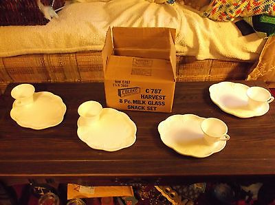 8pc Indiana Colony Milk Glass White Harvest Grape Snack Luncheon Set!! IOB!!!!