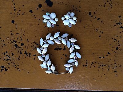 Vintage Kramer (signed)Milk glass, pearl, rhinestone clipon earings and bracelet