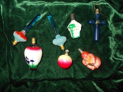 Title (ebay affiliate link): Lot Vintage Milk Glass Christmas Light Up Bulb Ornaments 1930's Bear Lamp Fruit
