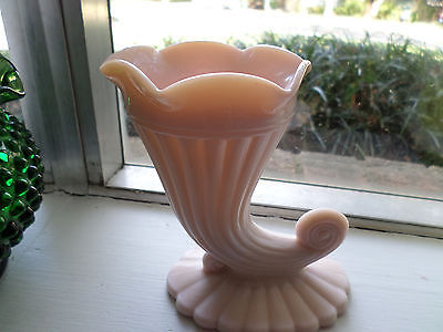 JEANNETTE SHELL PINK MILK GLASS FOOTED CORNUCOPIA VASE