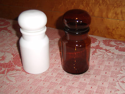 Vintage Belgian Glass Apothecary Storage Jars Smoky Brown and White Milkglass