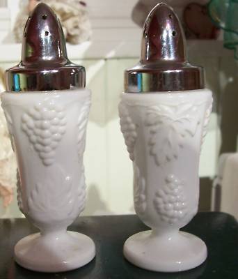 WHITE OPAQUE MILK GLASS SALT&PEPPER SHAKERS BY INDIANA