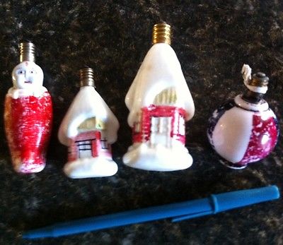 lot of 4 antique figural christmas lights - rare baby + houses and lantern