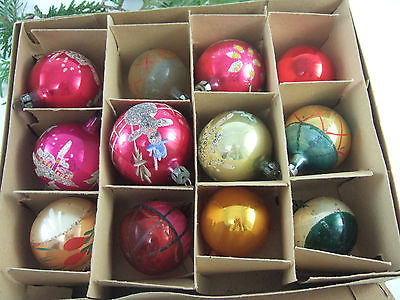 Vintage Christmas Poland Mercury Glass Mica Snowman Church Ornaments-Box 12