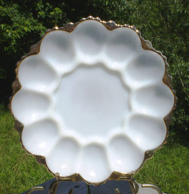 Vintage Anchor Hocking Milk Glass Deviled Egg Plate