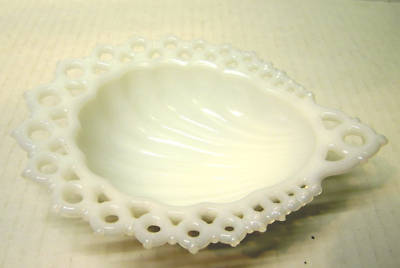 VINTAGE MILK GLASS OPEN LACE SHELL CANDY DISH FENTON