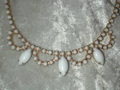 Vintage milk glass necklace and screw back earrings