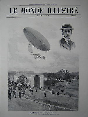 OLD PRINT ENGRAVING 1901 BRESIL BRASIL AVION PLANE SANTOS-DUMONT AEROPLANE