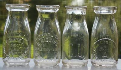 Lot of 4 Half Pint Milk Bottles, New York, Vermont