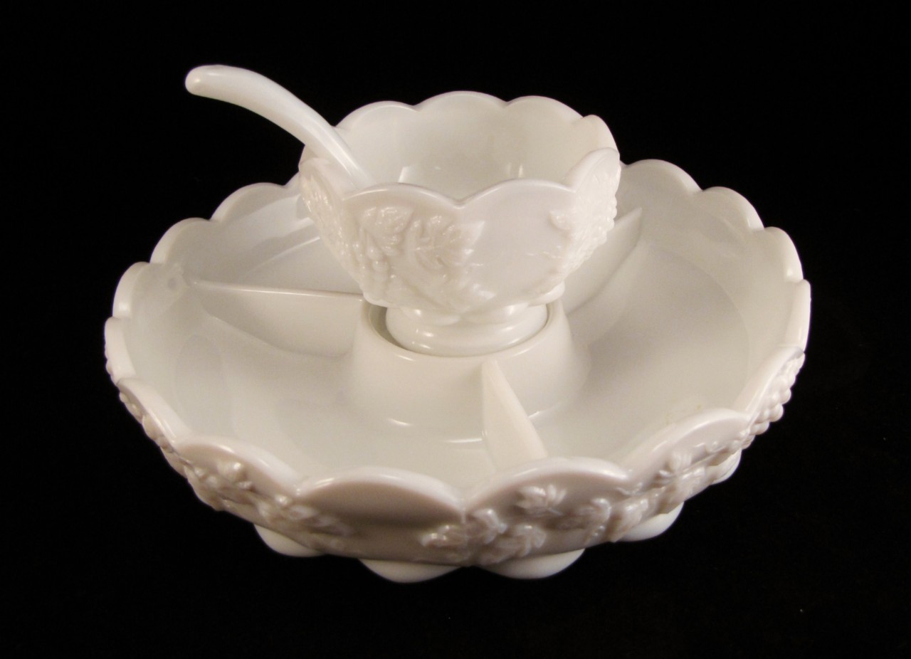 Westmoreland Paneled Grape Milk Glass Appetizer Set
