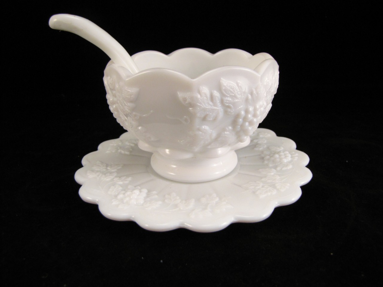Westmoreland Paneled Grape Milk Glass Mayonaise Set