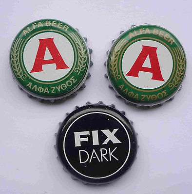 Lot of 3 Greek Beer Bottle Crown Caps ALPHA Alfa - FIX DARK