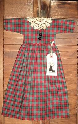 GRUNGY~PRIMITIVE WALL~CUPBOARD~DOLL DRESS RED GREEN XMAS PLAID FOLK ART~DECOR
