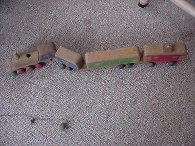 RARE Antique Vintage wooden wood train set pull toy original paint Folk Art