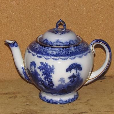 VERY RARE FLOW BLUE TEA POT IN THE RARE "WATTEAU" PATTERN "BUESLEM DOULTON"