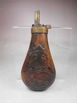 5509: Antique Powder Flask With Hunting Dog Pheasants Motif Nice Old