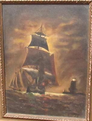 Title (ebay affiliate link): 19TH C FOLK ART OIL/BOARD PAINTING OF A CLIPPER SHIP AT NIGHT SIGNED "BURGESS"