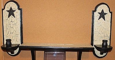 Title (ebay affiliate link): PRIMITIVE WOOD SHELF, 2 SCONCES, CRACKLE PAINTED COUNTRY FARMHOUSE DECOR