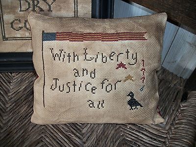 Prim aged cross stitch sampler ~ With Liberty and Justice For all ~ Pillow