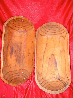 2 NESTING DOUGH BOWLS~TRENCHERS~Centerpiece~Primitive Decor~Hand Carved Wood