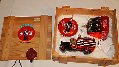 Coca Cola Coke Polonaise Christmas Ornament Set In Wooden Box Kurt Adler 1996
