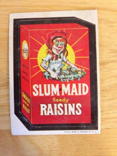 Title (ebay affiliate link): Original Vintage 1967 Topps Wacky Packages Card #6 Of 44 Slum Maid Raisins