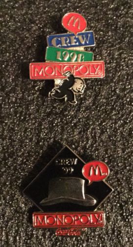 Title (ebay affiliate link): McDonald's Monopoly Crew Lapel Pins 1998 & 1999 Coca Cola Rich Uncle Penny Bags